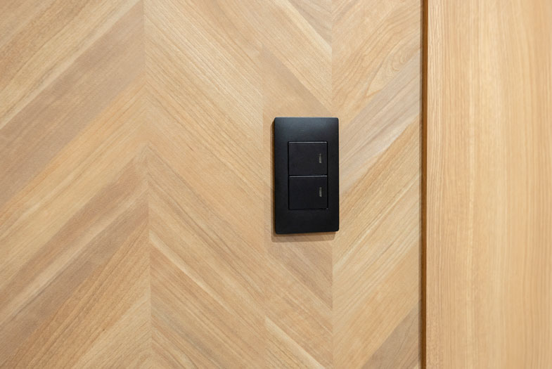木目調のクロスに合わせて、スイッチの色にもこだわりました