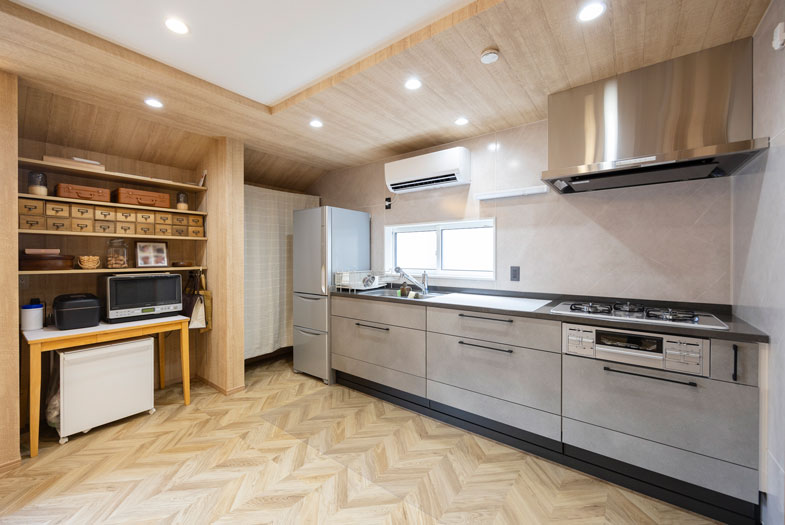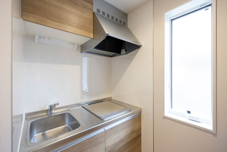 リビング・ダイニングを広くするために、キッチンはあえて窓側を向いています