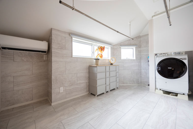 ウォークインクローゼットのさらに奥には、室内物干しつきのランドリールーム