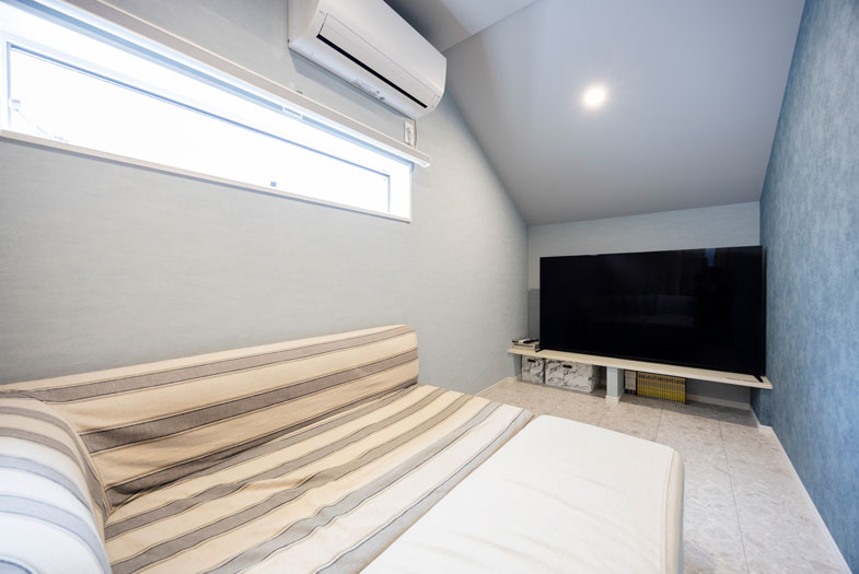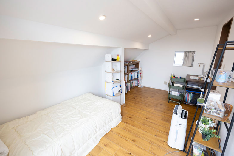 勾配天井で立体感のある部屋は、お子さまの居室として利用