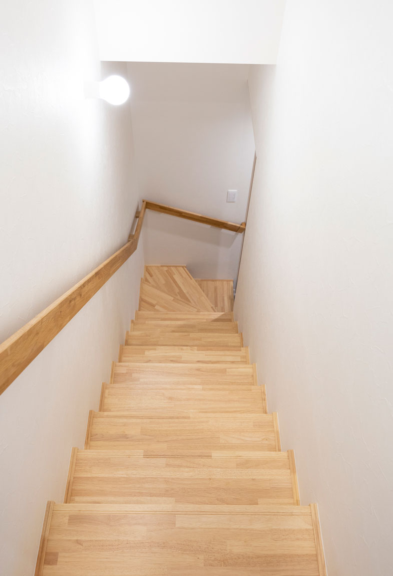 階段や手すりにも、あたたかさを感じる木材を使用しています