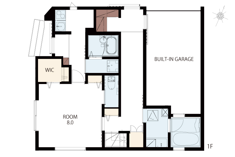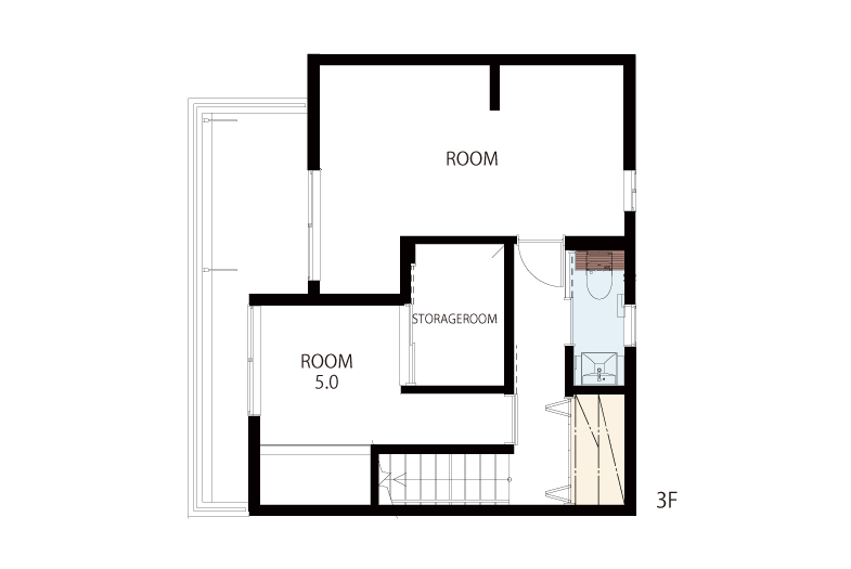 私たち家族は「みんなでワイワイ過ごす」というよりは、私(ご主人さま)は筋トレ、妻は自分の趣味、娘も自室での勉強や植物の世話といった具合に、「それぞれが自分の好きなことをする時間」を大切にしています。そんなライフスタイルを反映し、共有スペースであるLDK以外は、それぞれの個室を充実させることを考えました。当初は2階建てや中庭を設ける案もありましたが、最終的には建ぺい率や容積を最大限に活用した3階建てのプランに落ち着きました。また1階部分は、親との同居や賃貸として貸し出すことも想定して、ミニキッチンやバスルームも備えた独立した空間として設計。ライフステージが変わっても、住み続けることができるように考慮しました。