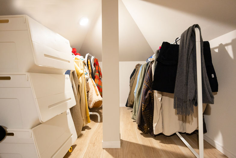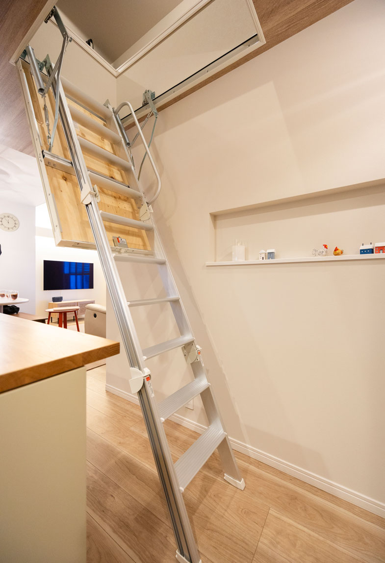 キッチンの真上が4.5帖ほどの収納スペース(小屋裏収納)になっています