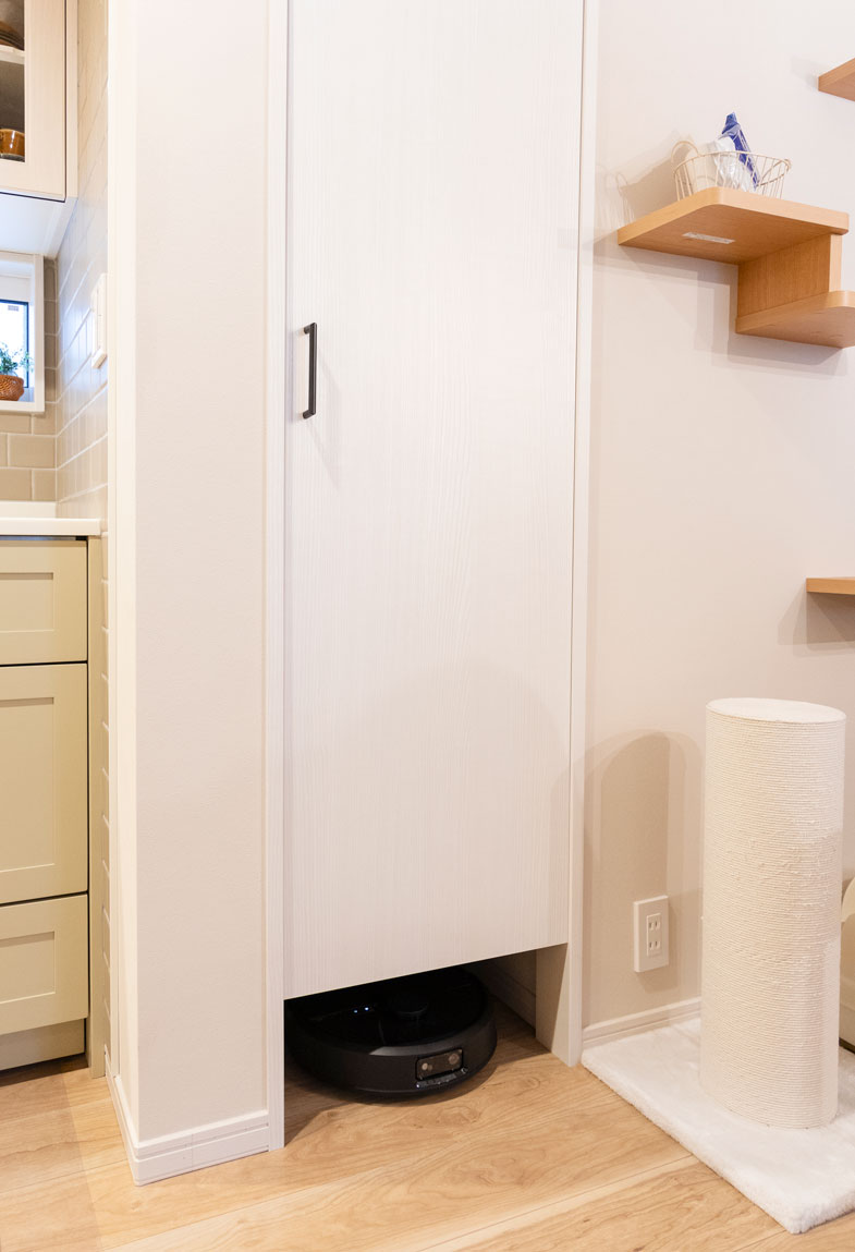 リビング横の収納庫の中には、ロボット掃除機のステーション用のスペースと電源も