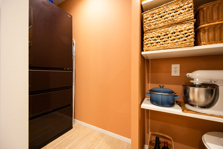 冷蔵庫もパントリーの中に。これだけでキッチンの見た目が変わります