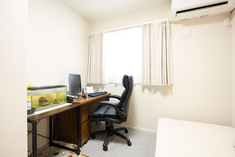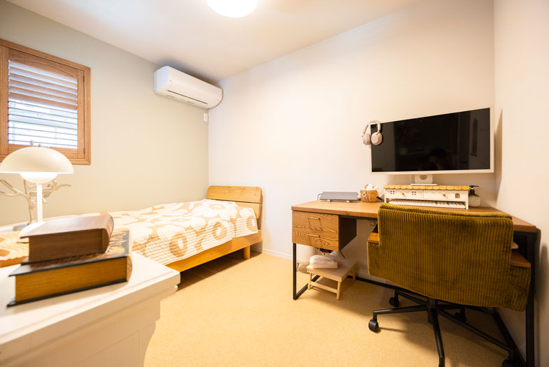 アクセントクロスが落ち着いた雰囲気のご主人の居室兼寝室