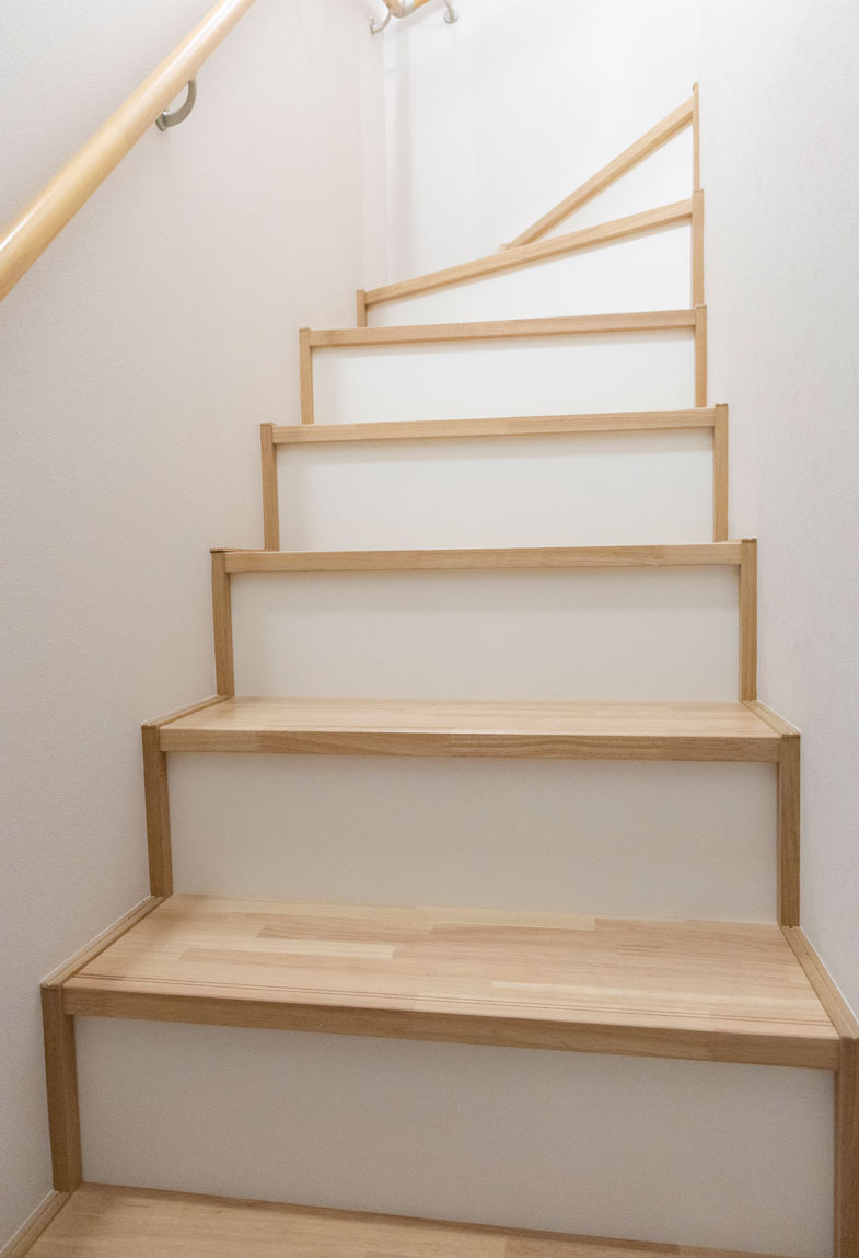 踏み面と蹴込み板の材料を変えるだけで、オリジナリティーのある階段に