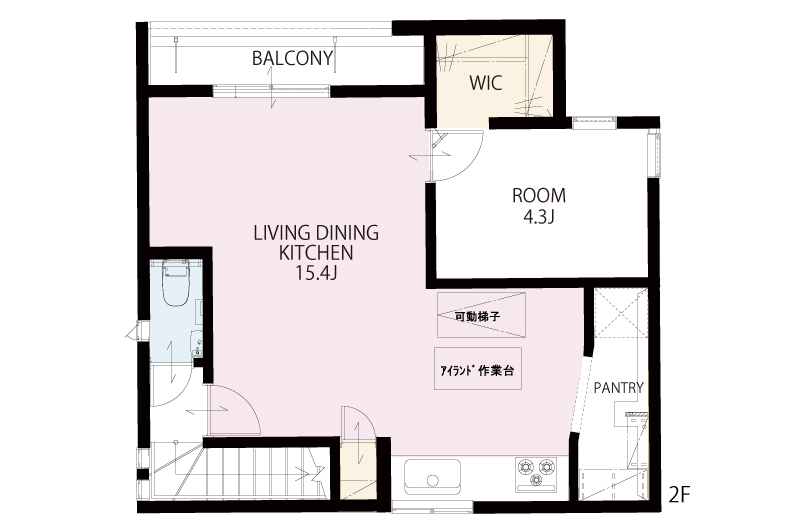 2Fのリビングの横には奥さまのワークスペース兼居室