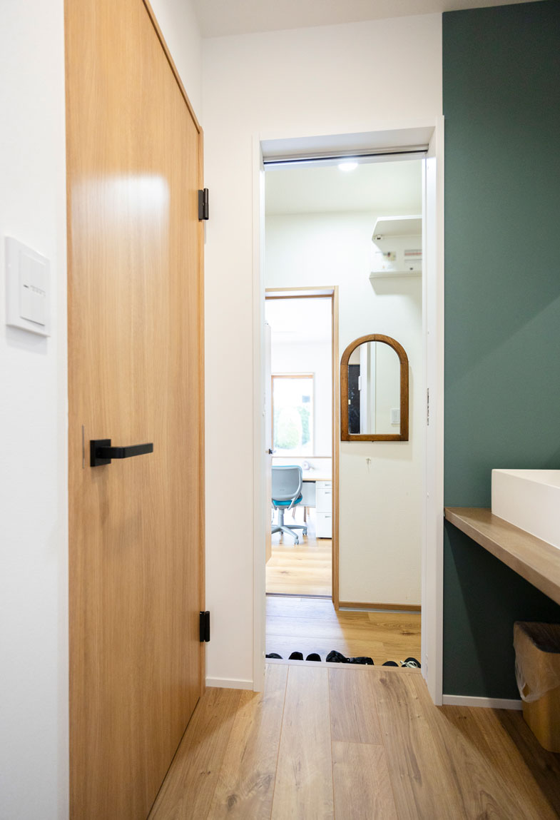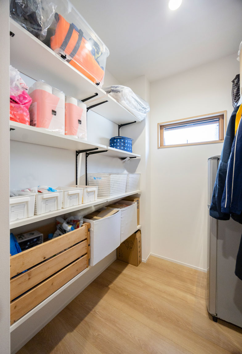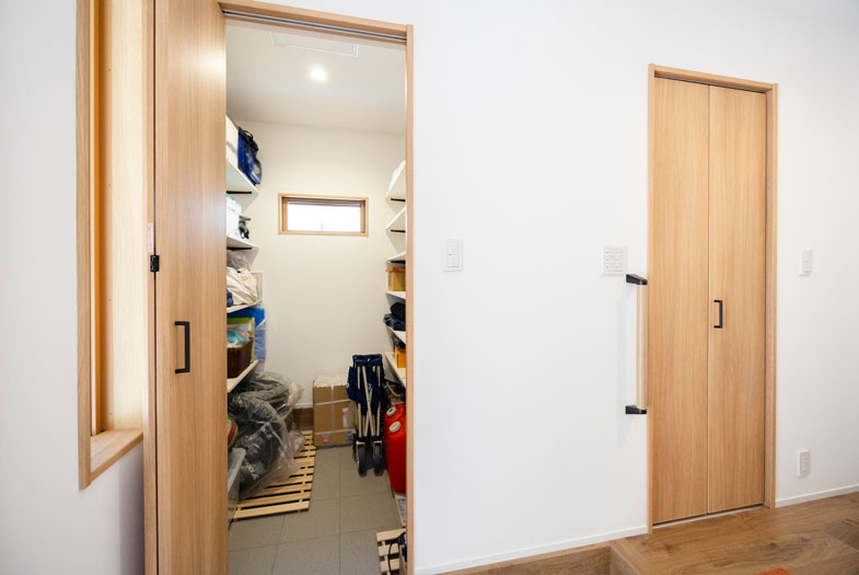 玄関のすぐ隣りには、広々とした土間収納と収納部屋を配置