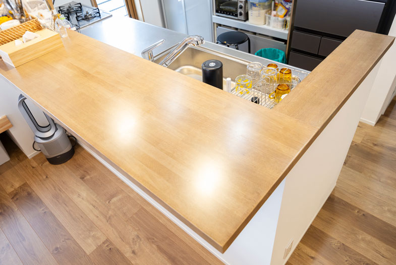 キッチンカウンターは利便性を考慮して、通常よりも広めの幅になっています