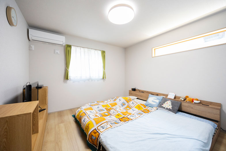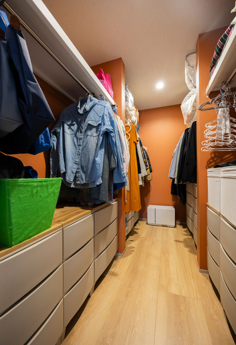 主寝室にはウォークインクローゼットを配置。収納ケースがぴったり収まる幅です