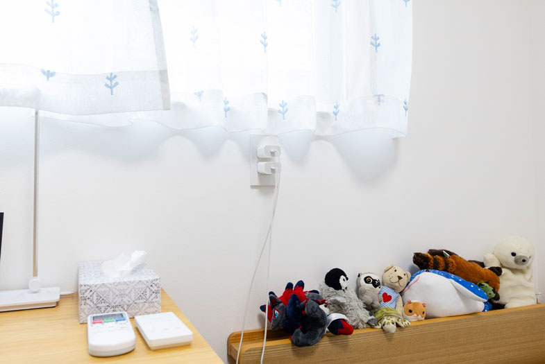 各居室ではPCなどを使うことを想定して、机の高さにもコンセントを配線しています
