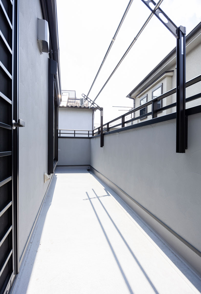 隣家側にバルコニーを配置して、ほどよい距離をつくっています