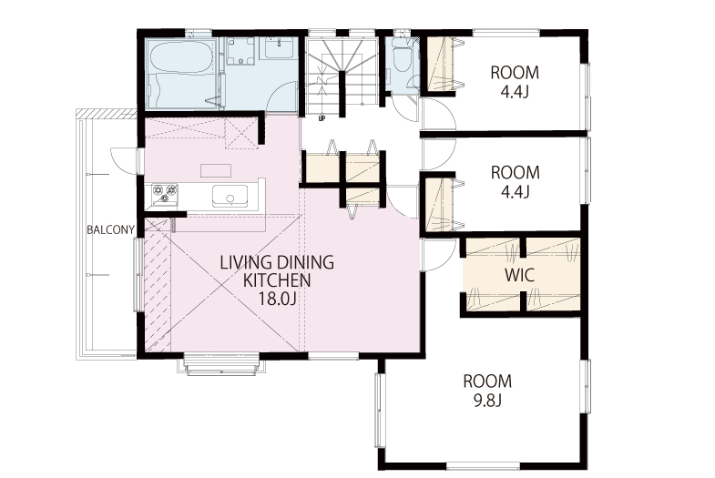 LDKや居室など、生活のスペースは2階に集約